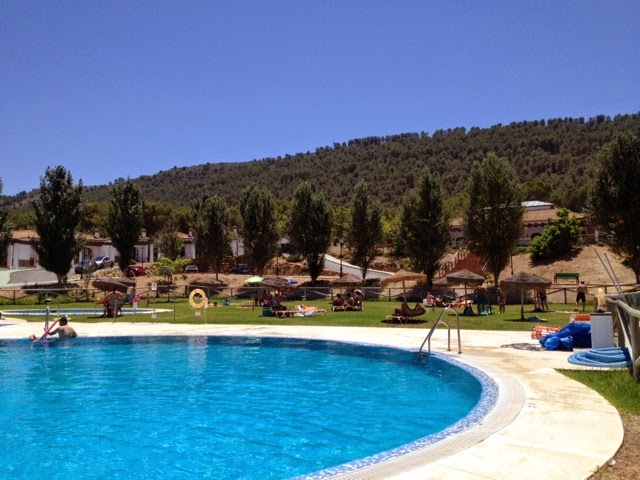 A very sad day. Pilly slept with us last night (thinks she knows we are leaving). We emptied "our house" (cannot believe how much stuff we have got!) packed up Priscilla and cleaned the house. It was very sad saying goodbye to Alan & Hetty. They have been so good to us and we have had a wonderful experience living and working at Puerto el Peral. But it is time to move on for some new adventures in some new areas. We stocked up at the Dia supermarket in Almogia then headed towards a campsite not far away. We past Antequera and found a brand new campsite called La Sierrecilla in Humilladero. Our first job was to sort Priscilla out as we have so many clothes/ stuff and all the winter and summer things were muddled up. It has been an emotional few days with David & Fiona then having to say goodbye to Alan & Hetty we feel mentally drained! So a relaxing afternoon around the pool with a new book was enjoyed. We had a long Skype with Mum Jess and Ruby - was great to talk to them. Later we went over to the campsite restaurant and had a lovely meal of prawns in garlic, salad and rosado fish with potatoes while watching World Cup football Holland vs Argentina. It is such a lovely campsite we have decided to stay another night.